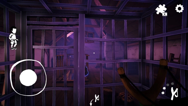 6、接着操控轮盘移动,使角色走出铁笼,随后通过探寻线索,逃离这个令人毛骨悚然的房间吧!