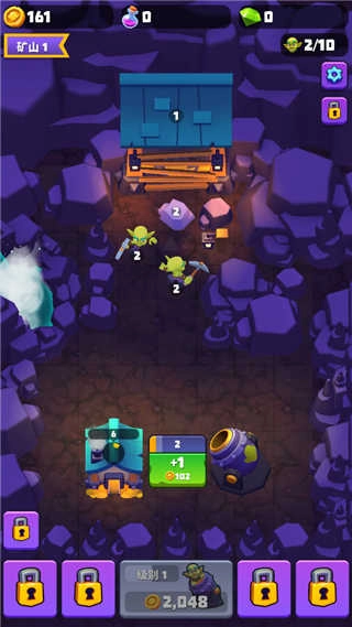 2. 这是一款以哥布林矿工挖掘黄金为背景的放置合成类模拟经营游戏,玩家在游戏过程中能够雇佣哥布林矿工并进行合成操作。