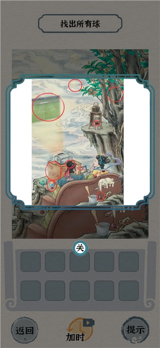 6. 第六关任务:找出十个球。温馨提示:连神仙看球赛都得借助投影仪哦。