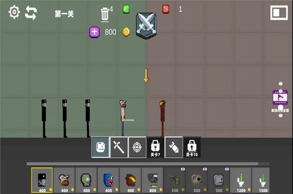 2. 开启游戏冒险战斗需通过游戏关卡,在游戏挑战过程中,可随意收集武器道具。