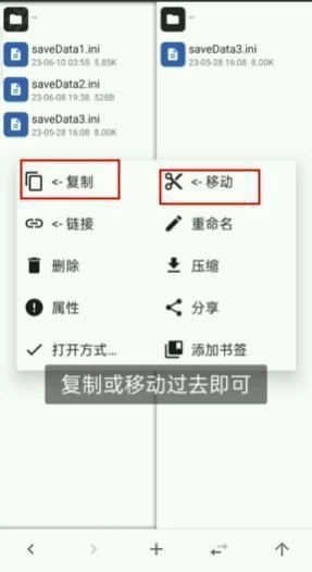 5、找到需导入的存档,进行复制或移动操作即可。