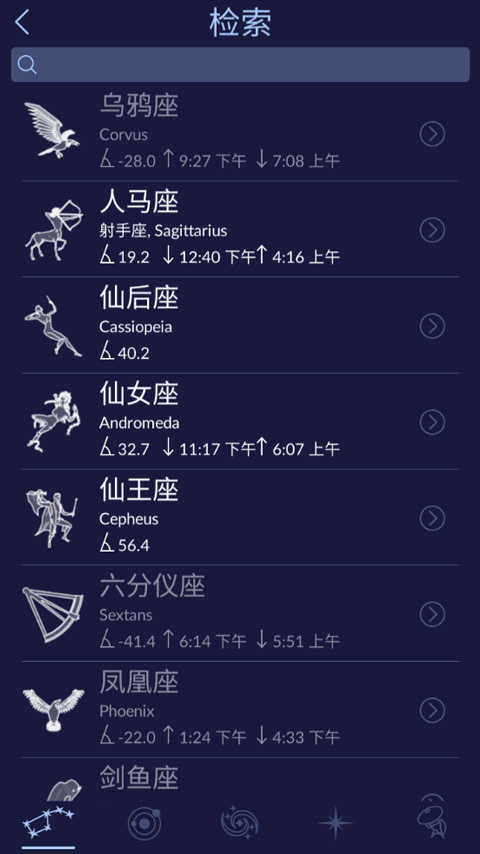 3、轻点屏幕左下角的搜索标签,就能直接搜索你想看的星座或者恒星。