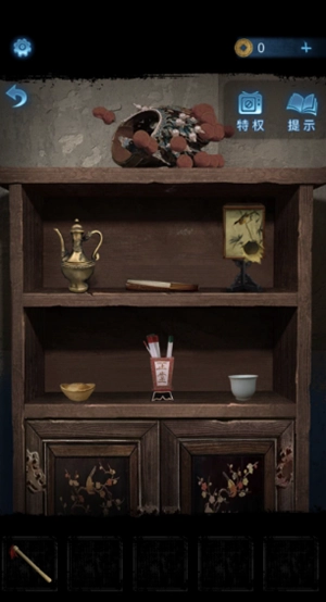 10、进门之后,点击桌上的报纸,就能看到图案,旁边还有一根棍子。
