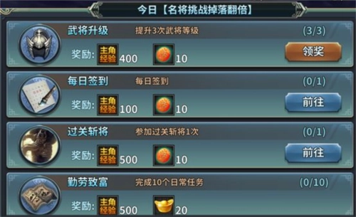 主公经验,主要通过战役关卡、挑战里面的名将挑战和密林剿匪、多人战役的一夫当关、等级特惠礼包(达到对应等级会有等级礼包图标,可消费元宝进行购买主公经验)、日常任务完成后获得。