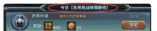 区服开服达到第二天,就开启日常双倍活动。主要分4种,顺序分别是扫荡经验双倍-桃树摇一摇双倍-名将挑战双倍-国战荣耀币双倍。新服第三天是扫荡双倍-第四天是桃树摇一摇双倍(如果第二天是双倍扫荡,那么第三天就是桃树双倍),后面按照双倍任务顺序轮换,4天一个周期。新区的主公可以前两天多留点粮草,等第三天在进行扫荡,获取的经验会相对多哦。