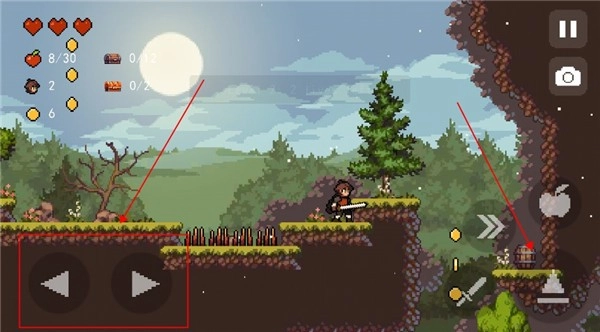 1. 左边的两个按键用于左右移动,右边的按键是跳跃键,双击该跳跃键能够实现二段跳,可借此躲避敌人攻击以及翻越障碍物。