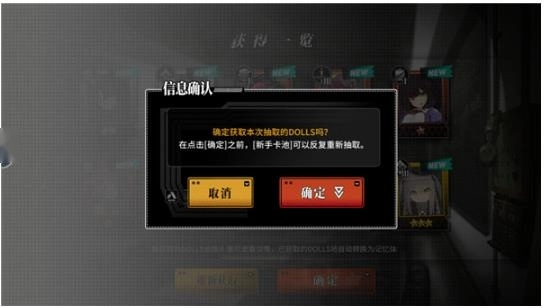 5、若代理人已获取到最为心仪的DOLLS十连阵容,打算结束新手无限重抽并确认此次结果,点击[确定]按钮便可!