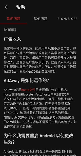 开源免费:AdAway 作为一款开源软件,其源代码对所有用户开放。 这使得用户可以自由地、使用并根据个人喜好进行修改,整个过程完全免费,为用户提供了极大的自主性和便利性。 高效拦截:该软件凭借先进的广告过滤技术,能够快速而准确地识别并拦截各类广告信息。 无论是网页广告、视频广告还是应用内嵌的广告,都能被有效地屏蔽掉,为用户创造一个清爽、干扰的浏览环境。 低资源消耗:AdAway 采用轻量级设计,在运行过程中对系统资源的占用非常少。 因此,它不会对设备的运行速度和电池寿命产生明显的负面影响,让用户可以更加流畅地使用设备,延长设备的使用寿命。 社区支持:它拥有一个庞大的开发者社区和广泛的用户群体。 当用户在使用过程中遇到任何问题时,都可以在这个社区中迅速找到帮助和支持。 同时,软件会持续更新优化,以适应不断变化的广告形式和技术发展趋势,确保始终为用户提供优质的服务。AdAway怎么使用