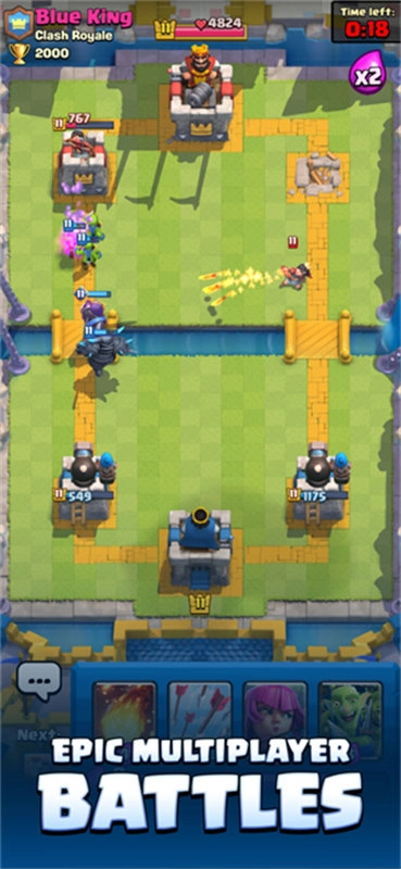 《Clash Royale》国际服是以《部落冲突》IP为基础全新打造的即时策略游戏,中文名是《部落冲突:皇室战争》。那些熟悉的角色再度出现在众多玩家眼前,培养你的部落战士军团,引领它们英勇作战,施展你作为指挥者的策略智慧,赢取更多胜利。《Clash Royale》国际服极具可玩性,丰富多样的玩法将带给你全新体验,持续组建你的卡组,去感受全新的对战乐趣吧。