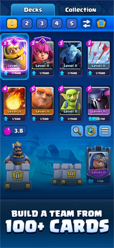 3、拥有14个特色各异且能多次升级的兵种,用心打造您的终极战斗牌组,战胜对手。