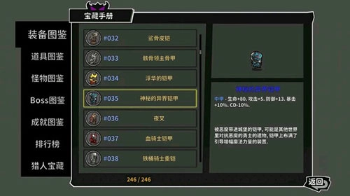 适中的打击感,搭配易上手的操作模式,再加上“稍稍有点难度”的挑战设定,经典的“横版动作闯关”玩法,瞬间就能点燃手指最初的跃动。游戏中融入大量Roguelike元素,使得关卡、怪物以及道具皆随机生成,如此一来,运气也成为决定胜负的关键因素。