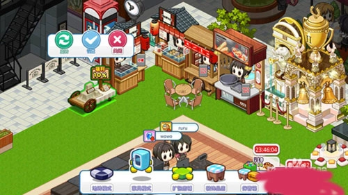 4、在自家布置好路边摊后,去好友家中逛逛,瞧瞧是否有闲置摊位,若有,就把剩余摊位开设在好友家里。