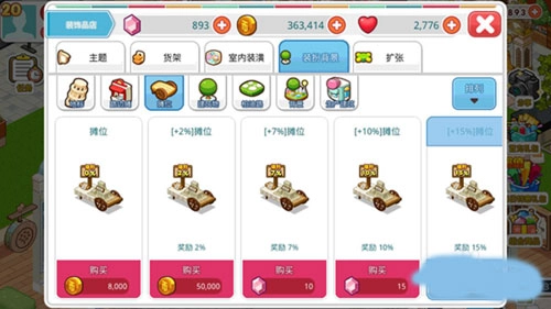 1、购置装饰品:前期为提升营业额,扩大店铺规模十分必要,因此需购买一些装饰品来装点店铺(无需用红宝石购买,金币购置的装饰就已足够,当然,土豪们可无视此建议)。建议初期别为节省金币去买那些人气值低的装饰品,毕竟后期会发觉这些廉价家具根本不够用,届时再更换反而更费钱。所以,建议前期可根据自身情况,购买人气值在40左右的装饰品。