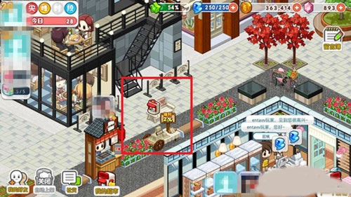 5、请注意:游戏里,若出现红框中的图案,即表示存在空闲摊位。此时点击“开店”,随后只需等待好友接受即可。