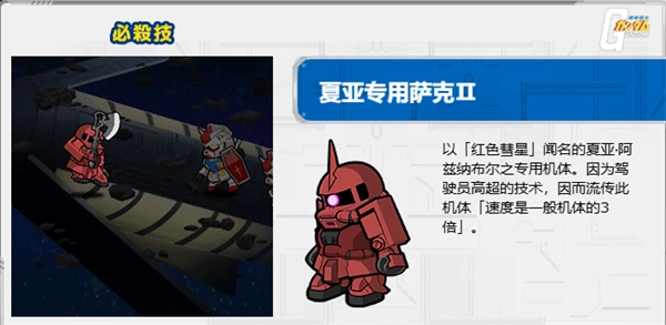 3、可释放连续技、进行闪避、施展必杀等,同时夏亚“三倍速”等经典台词也得以还原,让战斗充满强烈的临场感。