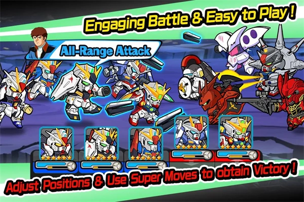 《Line高达大乱斗》是一款独具特色的动作冒险游戏,采用Q版画风,以“机动战士高达”为主题背景。它不仅高度还原了宏大的宇宙世界,对其中各类机甲角色的还原更是做到了极致,能让玩家获得极为沉浸式的游戏体验。玩家一进入游戏,便能目睹各种精彩纷呈的画面,瞬间眼前一亮。游戏内还设有单人剧情闯关、全球实时PVP对战、多人协力BOSS战等丰富多样的游戏模式。玩家不仅能够自由选择想玩的模式,而且随着不断游玩,还能解锁更多的高达,收获更多的欢乐。