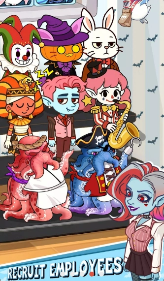 2. 卡通画面的设计极为可爱,游戏中可招募不同员工来接待形形色色的西方妖怪。