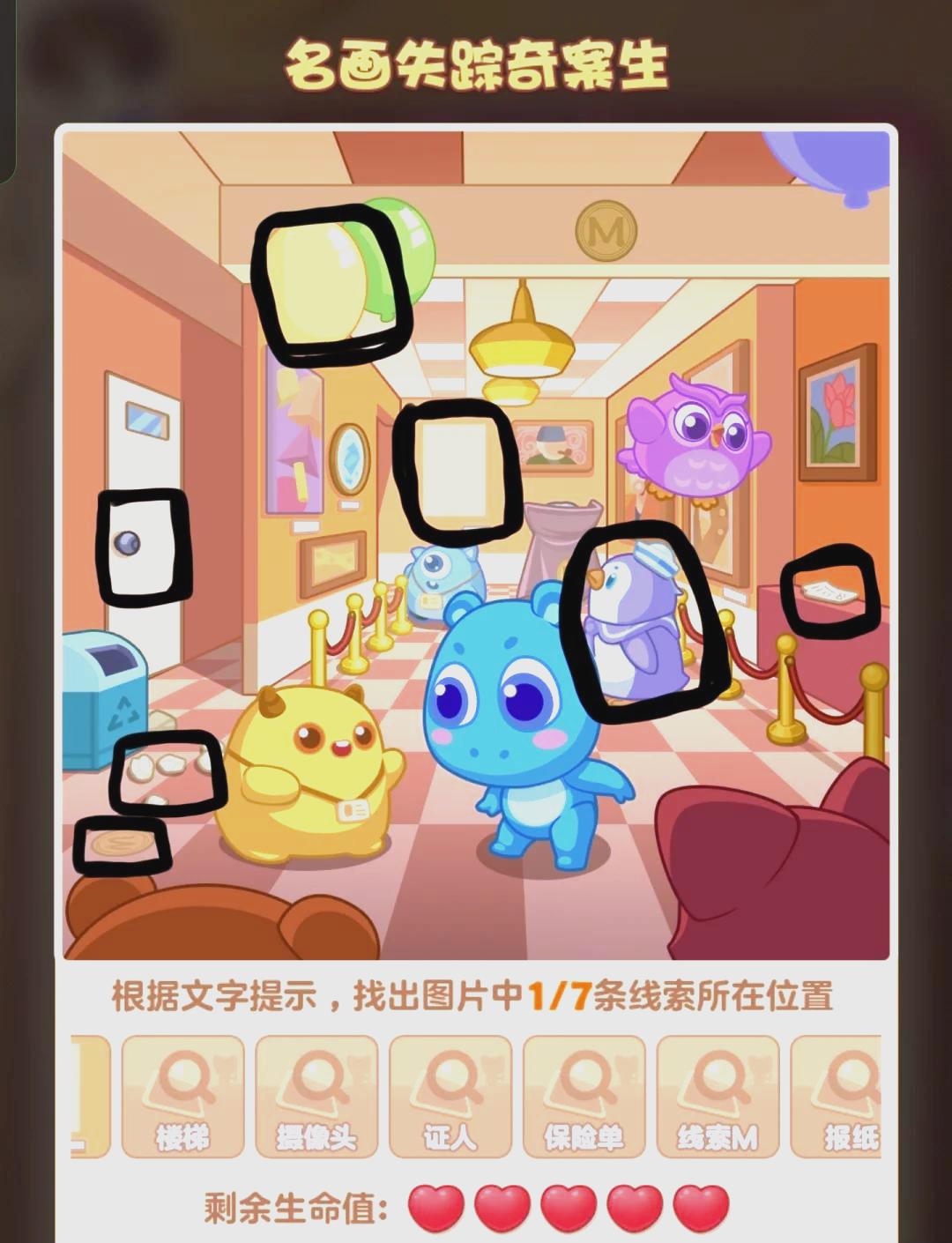 寻找名画展示位:点击画面正中间的长方形,即可找到名画展示位。