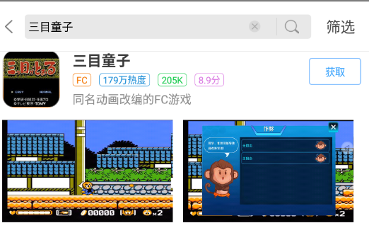 在悟饭游戏厅里,进行搜索操作,搜索对象为三目童子。