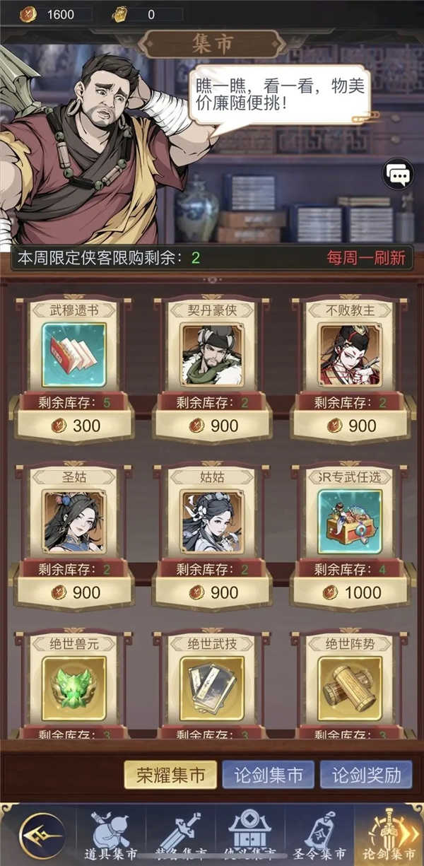 荣耀集市:于论剑集市中的荣耀集市,凭借荣耀进行兑换获取,每本武穆遗书需300荣耀。