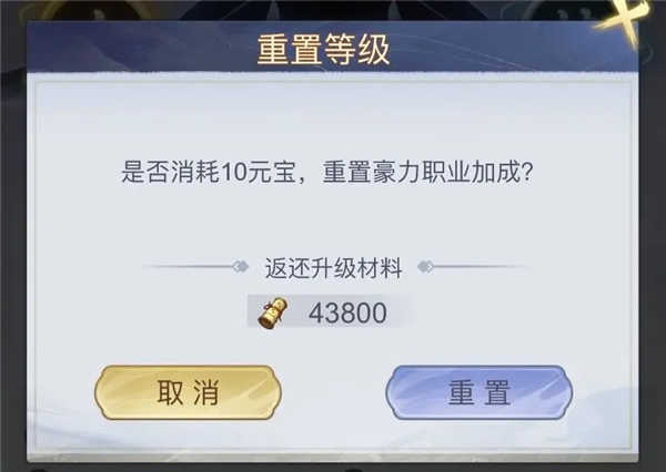 若要更换升级至其他系,仅需消耗10个元宝就能重置等级,同时会返还所有升级材料(精进点)。