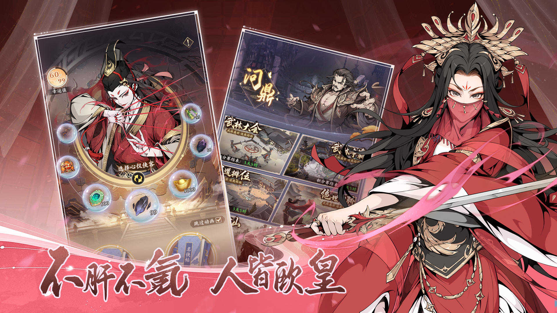 ●佛系挂机玩法:只需轻松放置,无需耗费大量精力“肝”,也不用重金“氪”金,就能尽情享受从初出茅庐的菜鸟一步步成长为叱咤风云大侠的强烈快感,深度体验那畅快无比、淋漓尽致的江湖冒险历程。