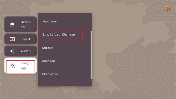 2. 点击“Language”,将其切换至“Simplified Chinese”,如此便将语言设置为中文了。