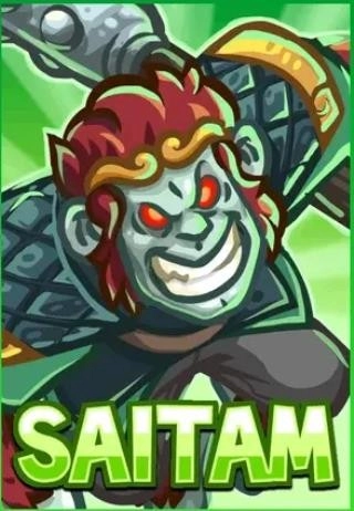 十三、神猴塞塔姆(Saitam):该英雄自身较为脆弱,普通攻击造成的伤害比不上沙王,然而其技能伤害表现良好。其中,“神怒”堪称神技,能在全屏范围内提升65%的伤害,与图腾配合使用时,威力十分惊人。
