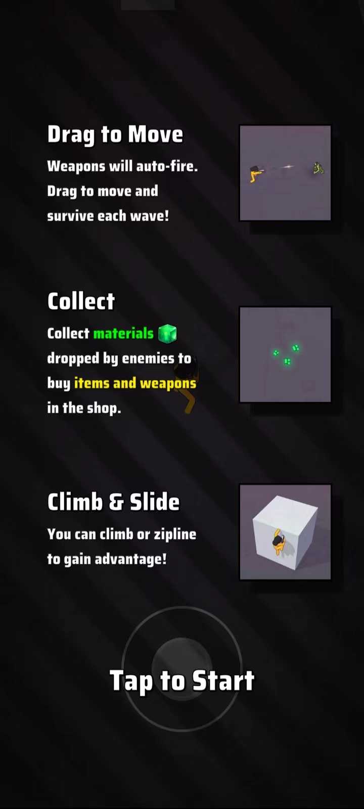3、随后,玩家能够看到如下图所示的简易游戏攻略,点击【tap to start】即可进入游戏。
