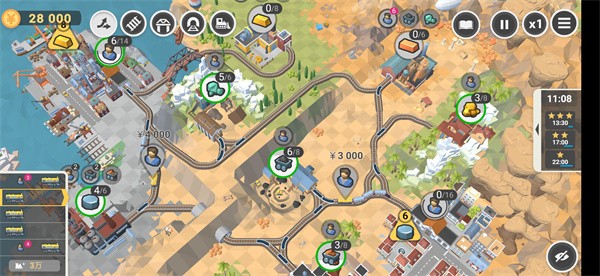 1. 游戏开局,首先将基础材料的运输路线连接好。鉴于煤炭数量较为充足,接下来集中精力运输人口,以增加煤炭产量。待煤炭储量达到饱和后,开通通往铜锭加工厂的通路,将煤炭运送过去,从而获取收益。