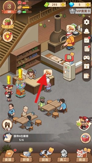 面包制作完成后,点击顾客头顶的气泡,把刚出炉的新鲜面包送到顾客的桌前。