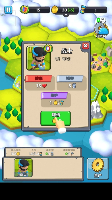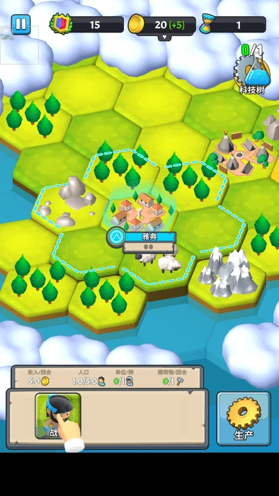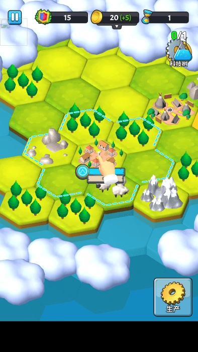 你的发展离不开科技的引导,你需要依据领土内的资源分布情况,点击科技树来解锁生产单位。