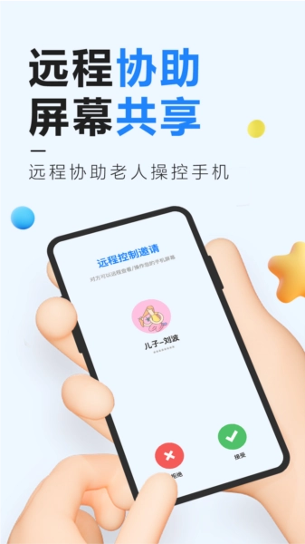 用户能够在线远程协助老人使用手机,便捷地实现屏幕共享。