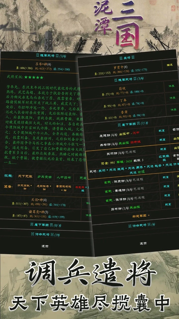 泥潭三国是上海手心软件有限公司开发的一款三国题材mud文字游戏,招募不同的三国泥人英雄,组建强大的对于,制定合理的战术,完美的完成每一次大事件,游戏很好的还原了三国历史事件,保留了真实的三国霸占体验感,每一次对局都充满了挑战。