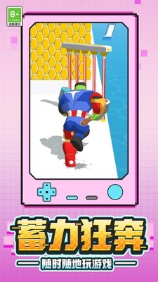 卡牌英雄小队是一款休闲跑酷游戏,主角为经典超级英雄,玩家可选择美国队长、钢铁侠等角色,在布满障碍与机关的3D赛道上快速奔跑。游戏融合了跑酷操作与角色养成元素,不仅有紧张刺激的机关躲避环节,还能让玩家体验解锁英雄能力的成就感,加上卡通画风与快节奏玩法,适合各个年龄段的玩家挑战手速极限。