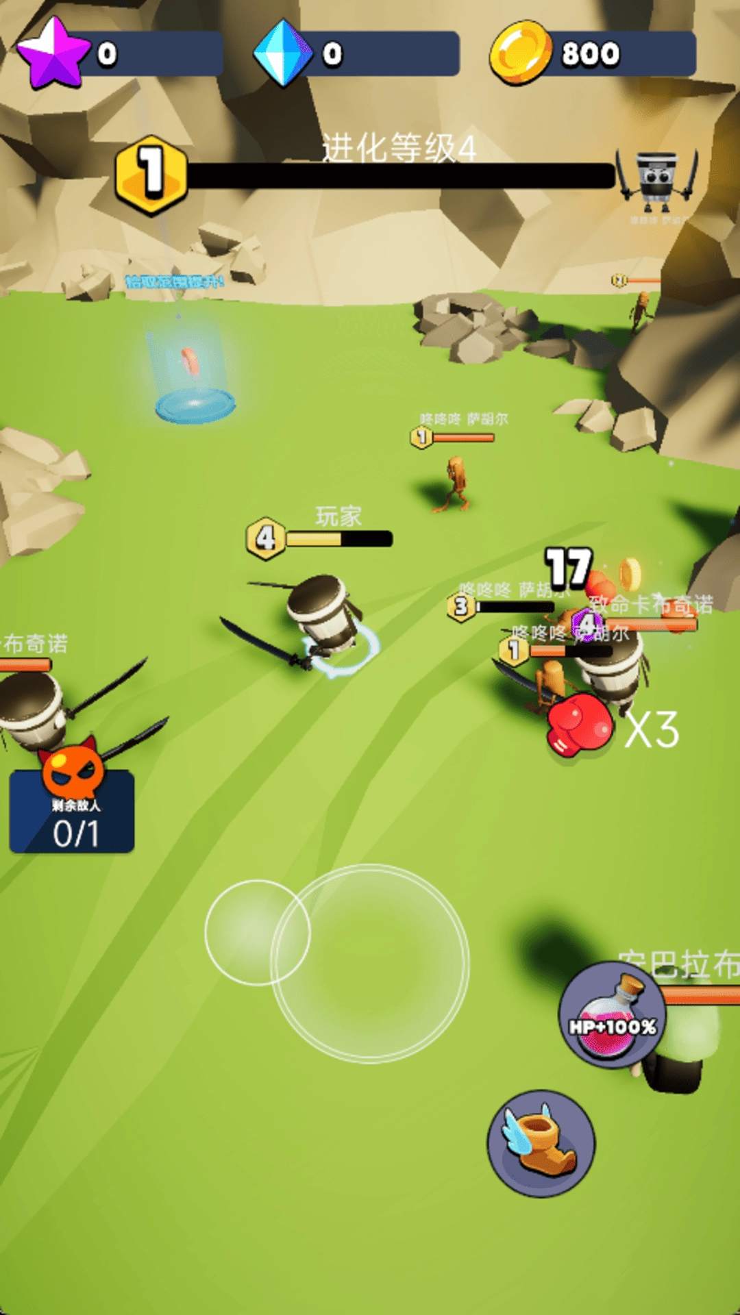 进入地图后,通过滑动虚拟摇杆操控角色移动,与敌人展开对抗。