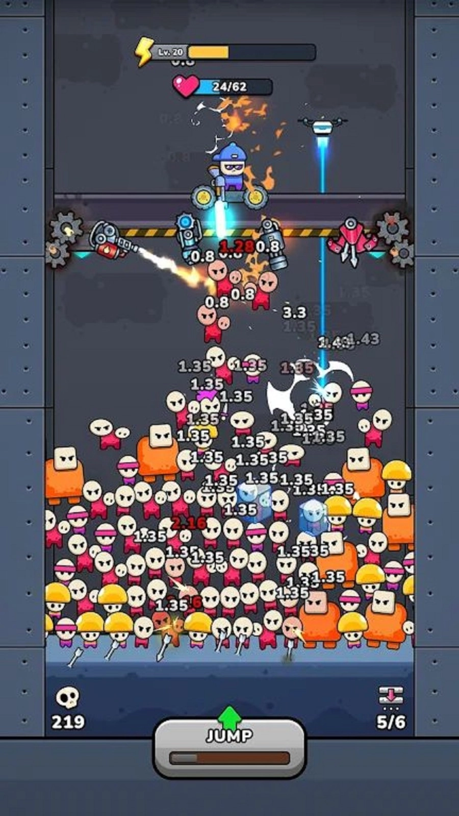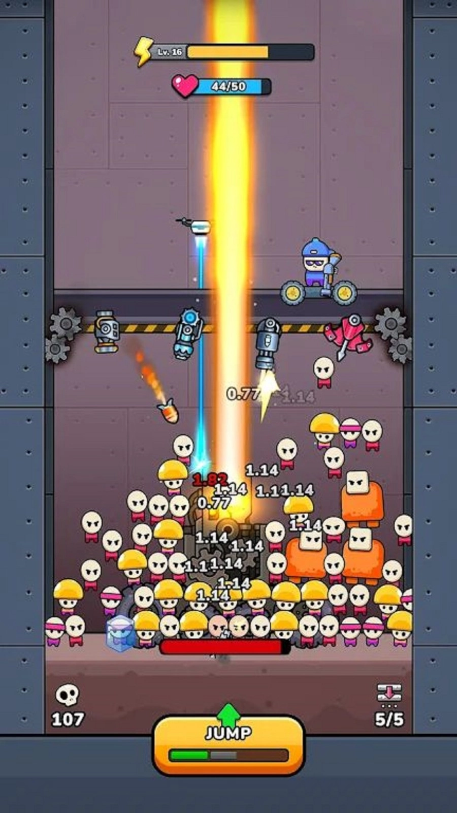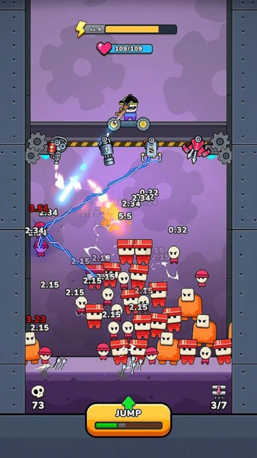 《军队堆栈》是一款生存射击类的休闲创意游戏,它采用紧张刺激的平台下降与敌人攀爬玩法,为玩家营造出持续的生存压力。游戏中,玩家身处不断下降的平台之上,需要应对从下方相互攀爬、逐渐逼近的敌人。玩家可以通过左右移动来调整自身位置,并进行精准射击以阻挡敌人的攻势,力求获得更长的生存时间。
