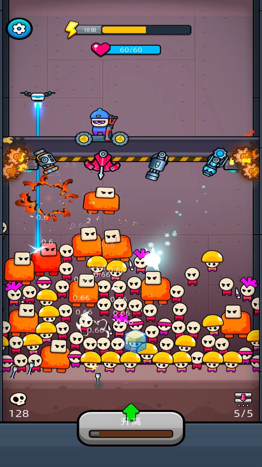 当平台降至较低位置时,要更加专注于攻击前排敌人,同时注意观察周围环境,避免因注意力不集中而被敌人冲破防线,最终导致生存失败。