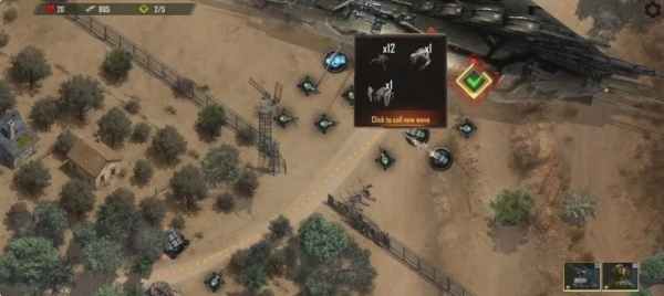 可以依据前几波敌人的种类搭建基础防御塔,像机枪塔用来对付小型部队,火焰塔则适合应对群体敌人。