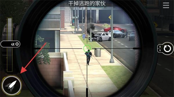 当任务目标与你相距较远时,可通过点击左侧的视距调节按钮来放大狙击枪的倍镜。