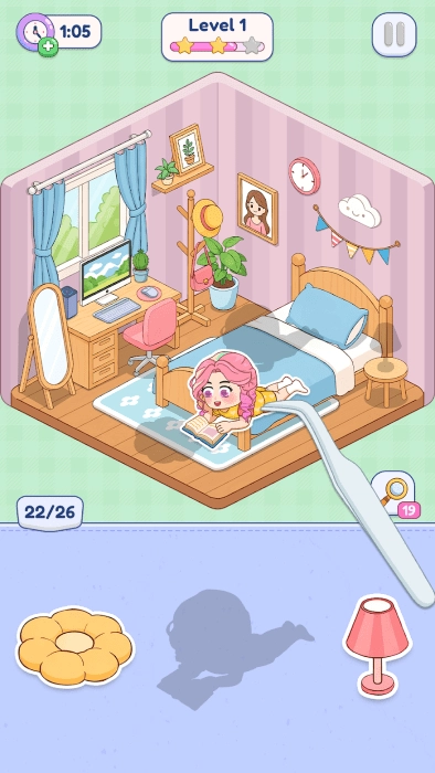 点击“开始游戏”按钮后,你就能按照自己的想法与创意,自由地装饰房间或者场景了。