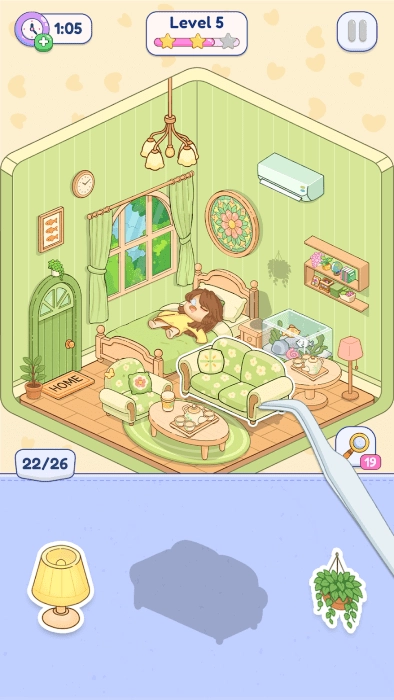 游戏采用关卡式推进机制,每个关卡都会设置不同的装饰主题、预算限制等挑战,玩家需合理规划并善用有限资源才能完成目标。