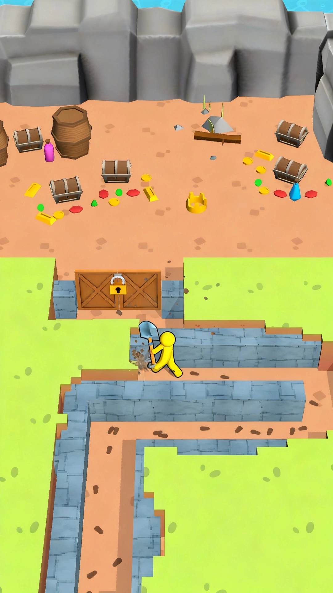 迷宫的构成元素包括能够挖掘的土层、质地坚硬的岩石,还有藏着各类宝藏与古老文物的神秘区域。