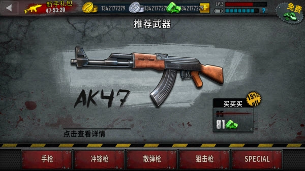 选择本次游戏想要使用的枪械,点击关卡。