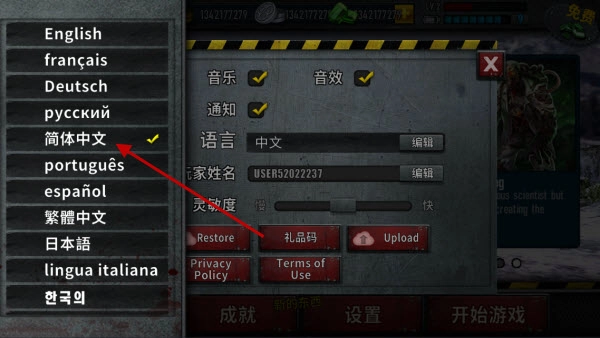 僵尸前线3怎样切换中文