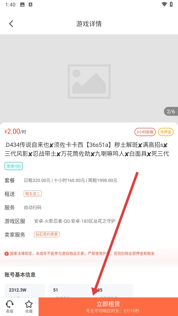 任意选择一款游戏账号,直接点击“立即租赁”即可。