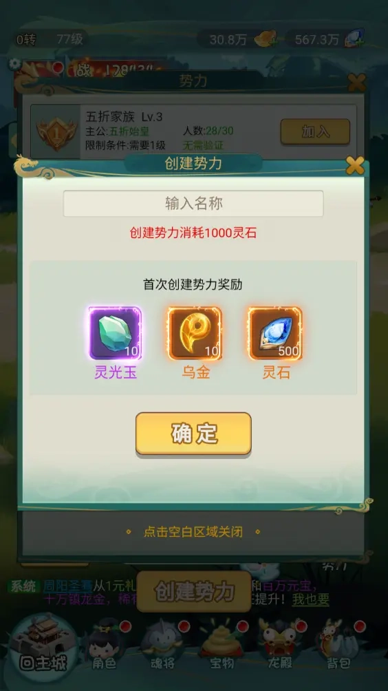达到相应等级后,玩家也能消耗游戏内资源创建专属势力,以此吸引理念相近的伙伴加入,携手推动势力成长壮大。