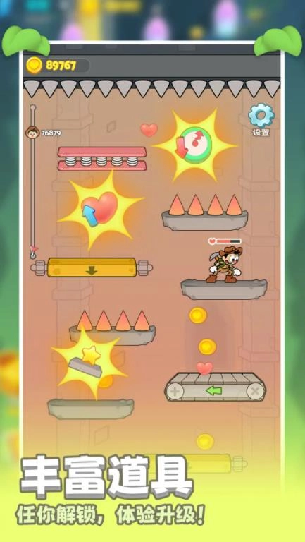 各种道具将等你去选择来使用,不同的道具效果可以让你完成更多的挑战。