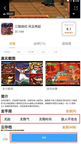 进入游戏界面后,可查看相关游戏资源,点击“获取”按钮即可。