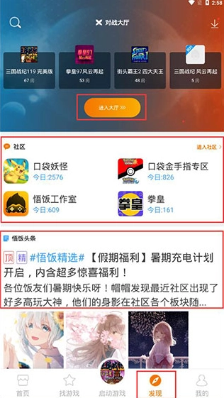 切换到“发现”板块,点击“进入大厅”,即可参与联机对战和浏览游戏资讯。